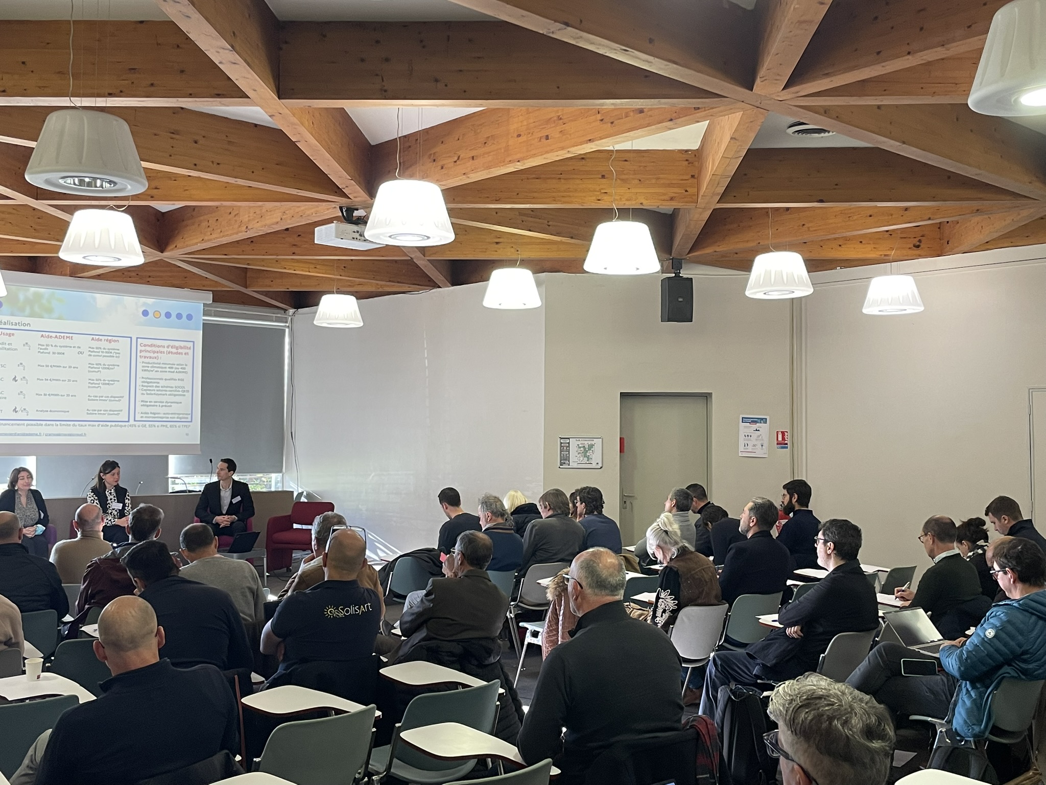 Une quarantaine de participants, installateurs, fournisseurs, bureaux d’études, exploitants, financeurs et quelques maîtres d’ouvrages ont été accueillis à la Maison du Bâtiment, à Marseille, où la Fédération régionale du Bâtiment Provence-Alpes-Côte d’Azur nous a mis à disposition ces locaux pour l’occasion.